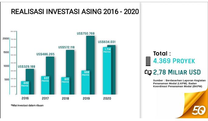 “ Namun jika dilihat dari jumlah proyek kegiatan, investasi 2020 meningkat jumlah proyek kegiatan berjumlah 1.714 investsi dibanding tahun 2019 yang berjumlah 968 investasi. Ini membuktikan bahwa ketahanan investasi dan iklim perekonomian Batam cukup terjaga karena tumbuh dan berkembangnya usaha skala kecil dan menengah,” tegasnya.