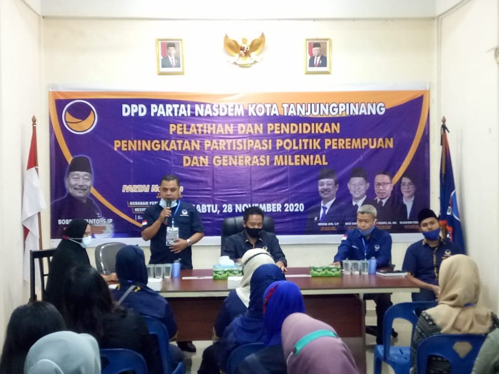 Pentingnya peran kaum perempuan dan milenial di bidang politik disadari betul oleh DPD Partai NasDem Kota Tanjungpinang. Perempuan dan generasi milenial adalah sumber daya manusia yang berkontribusi besar dalam perkembangan dan kemajuan politik di Kota Tanjungpinang termasuk keberhasilan Partai NasDem meraih 5 kursi di legislastif.