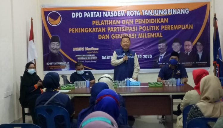 “ Keberhasilan Partai NasDem tidak lepas dari suara ibu-ibu dan kaum milenial yang telah percaya dan memilih partai ini. Namun kami tetap merasa perlu agar kaum ibu dan generasi milenial ini lebih meningkat semangatnya dalam berpolitik,” tutur Bobby dalam acara Pelatihan dan Pendidikan Peningkatan Partisipasi Politik Perempuan, yang diadakan DPD Partai NasDem Kota Tanjungpinang, Sabtu, 28 November 2020, di sekretariat partai tersebut.